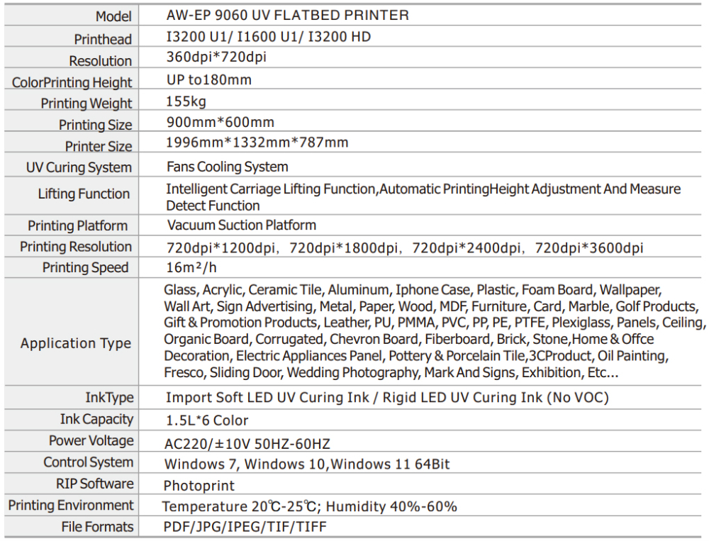 AW-EP9060 UV FLATBED PRINTER